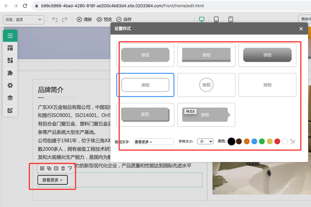 3、企业模板网站产品: 优化按钮组件,增加样式有8.