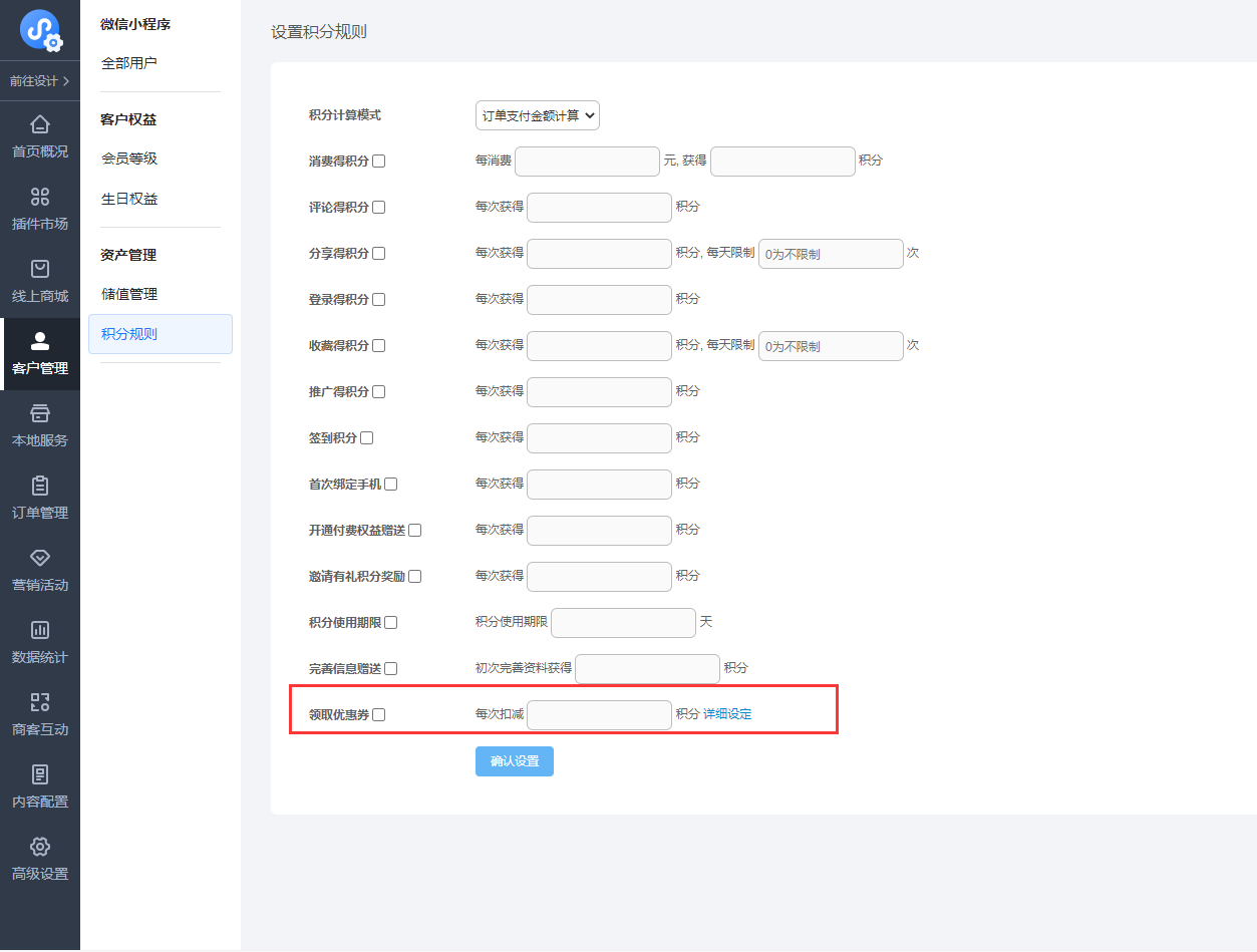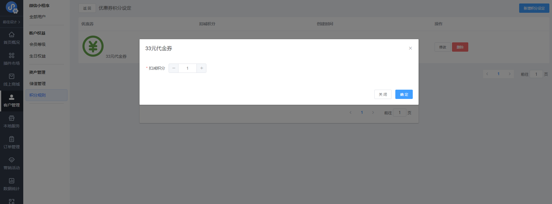 1、微信小程序产品: 优化积分规则,增加指定优惠券领取需要消耗积分功能。