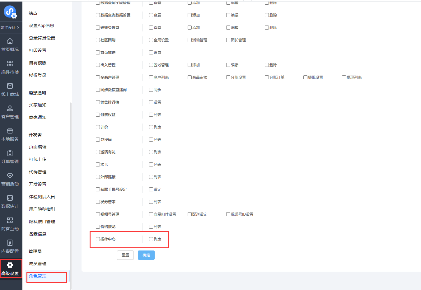 3、微信小程序产品:优化角色管理,增加插件中心列表。