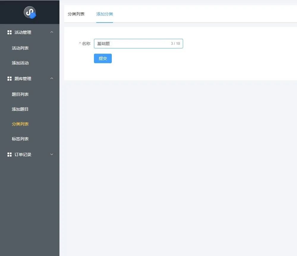 第五步:填写完题目后---点一活动列表--在对应活动--点题目