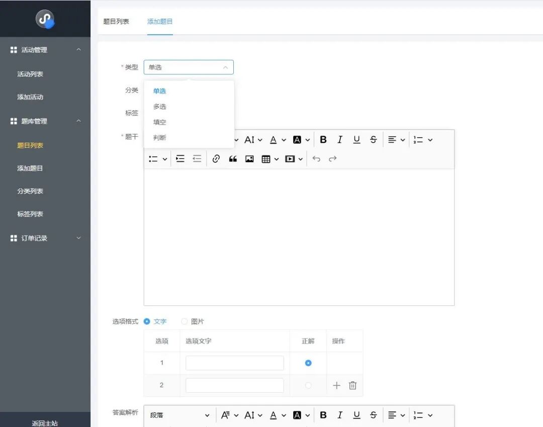 第二步:创建活动--选择活动类型(考试/练习)---选择是否付费